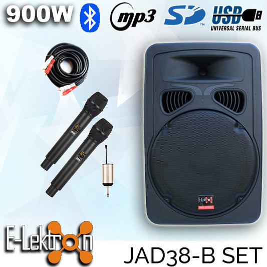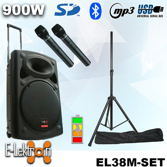 E-lektron EL38-M 15″ Inch Portable Speaker 900W PA Sound System Battery Bluetooth 2 Wireless Microphones Karaoke Party