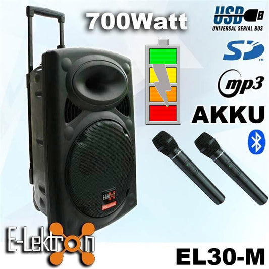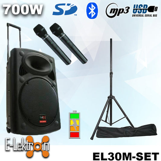 E-lektron EL30-M 12″ Inch Portable Speaker 700W PA Sound System Battery Bluetooth 2 Wireless Microphones Karaoke Party