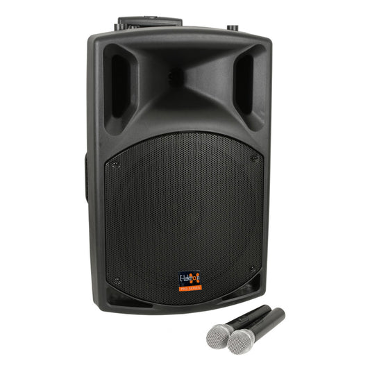 E-Lektron 15″ Inch Portable Speaker 900W Mobile PA Sound System Battery Bluetooth With 2 Wireless Microphones