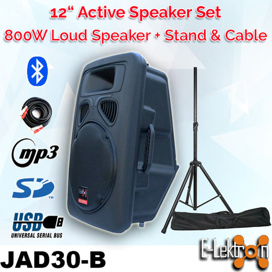 E-lektron 12” inch Powerful 800W Active Speaker Loud Digital Sound System PA Bluetooth with RAC cable and Stand