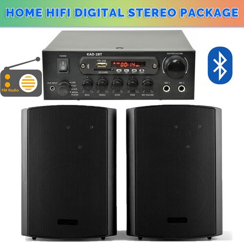E-Lektron 6.5" inch HiFi Digital Stereo Amplifier Wall Speaker Set BT SD FM Class D 120W