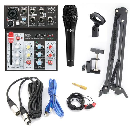 E-lektron 4 Channel Audio Interface Mixer Mixing Console for recoding with microphone stand and case