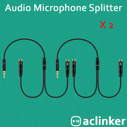 ACL 2 X Headphone Auido Microphone Splitter Adapter Aux 3.5mm Male to 3.5mm Female Headphone output & 3.5mm Female Mic Input